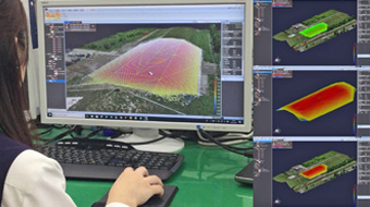 宮坂建設工業は、経済産業省が推進するDX(デジタルトランスフォーメーション)を目指し、i-Construction(アイ・コンストラクション)の全面活用に積極的に取り組んでいます。 ドローンによる3次元測量(起工測量)、3次元測量データによる設計・施工計画など、最新技術を用いて、土工における抜本的な生産性の向上を目指しています。また、i-Constructionへの理解を一層深めることとICT施工の工種拡大・普及促進を目的に毎年「i-Constructionセミナー」を開催しています。