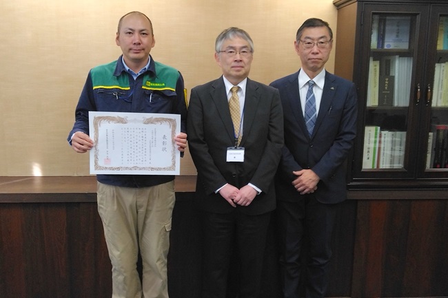 令和8年3月10日(火)、苫小牧労働基準監督署において建設事業無災害表彰伝達式が行われ、土谷啓二郎署長より現場職員に対し表彰状が伝達されました。