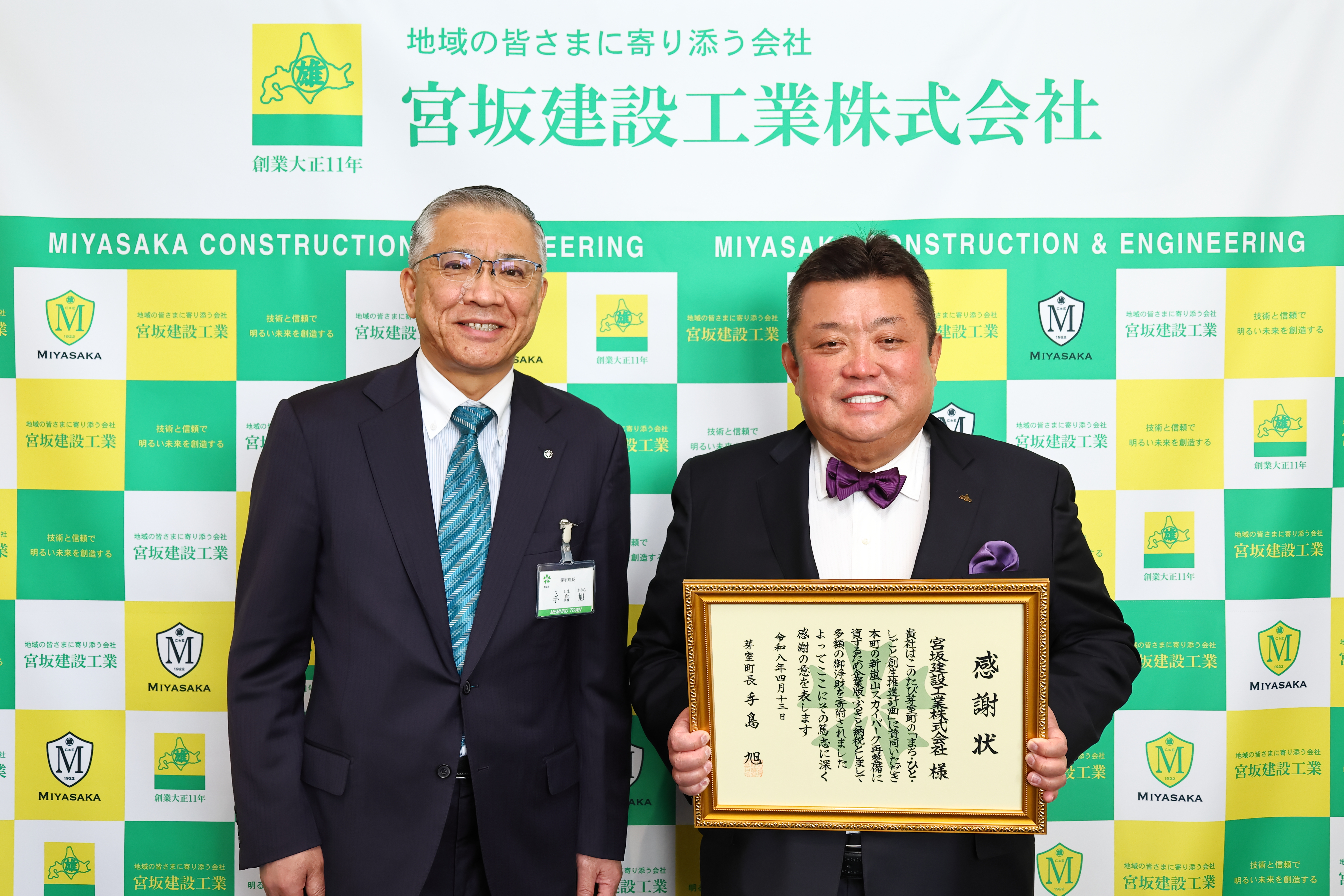 芽室町は社員やその家族が暮らす大切な町であり、弊社はこれまで農業基盤や公共施設などの整備に古くから関わってきました。こうした日頃のご縁への感謝と地域に支えられる企業として、このような機会をいただいたことに感謝いたします。