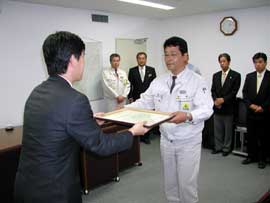 日本道路公団北海道支社長様より感謝状を受賞いたしました。