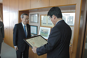 平成23年5月25日、当社 執行役員土木部長 木幡 彰夫が社団法人北海道建設業協会 会長 岩田 圭剛様より永年にわたり職務に精励しその成果は誠に顕著であり、他の職員の模範であるとして表彰されました。