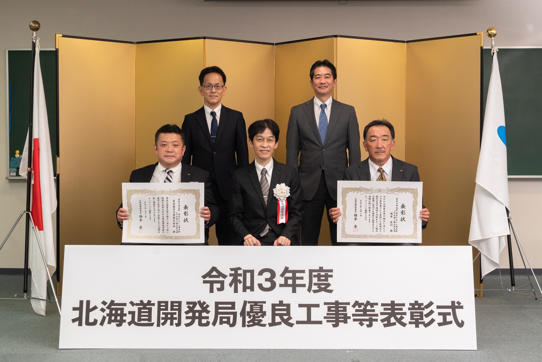 また札幌支社管轄では、札幌中央労働基準監督署で1件、函館労働基準監督署で1件、岩見沢労働基準監督署で4件、苫小牧労働基準監督署で4件がそれぞれ受賞しており、昨年度施工分としては全社で計14工事での受賞となりました。
