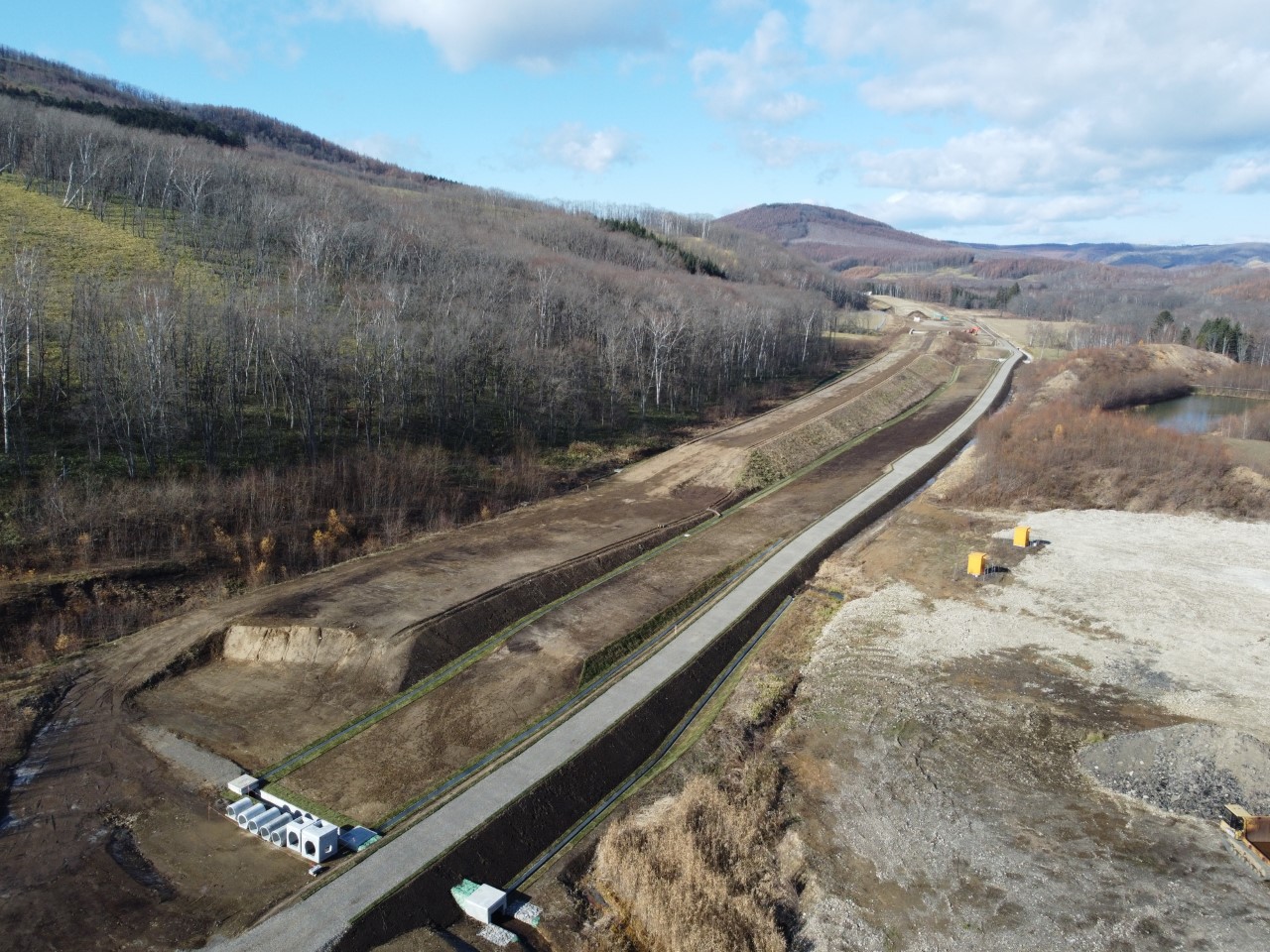 土木工事 北海道開発局 北海道横断自動車道 陸別町 川向改良工事 発注者 北海道開発局 帯広開発建設部 工期 令和7年4月1日~令和8年1月26日 工事の目的 北海道横断自動車道の小利別ICから南に12㎞に位置する3.5㎞区間で、道路土工、排水構造物、機能補償道路を施工する工事です。(赤坂 幸広)