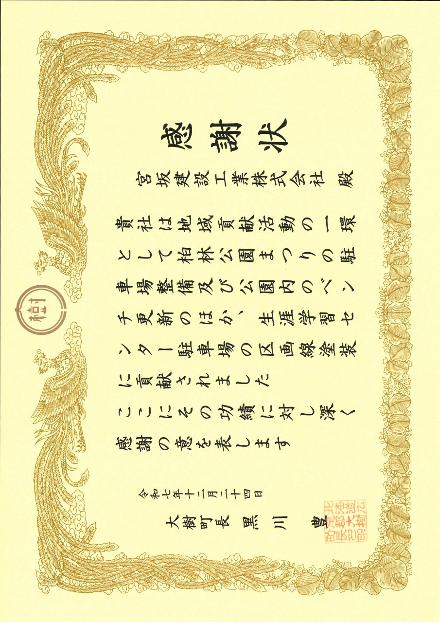 - 大樹町より感謝状②(12月度)