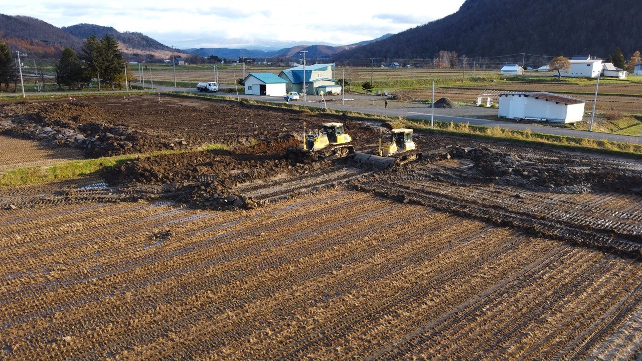 本工事は小区画の現況ほ場を区画整理により大区画化する工事です。施工にあたり各関係機関や地域の方々とのコミュニケーションを大切にし高品質かつ無事故無災害での工事完成を目指します。