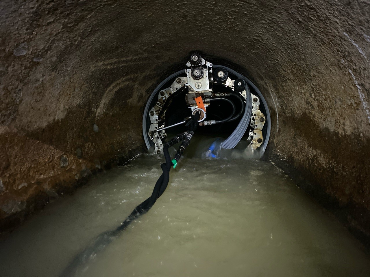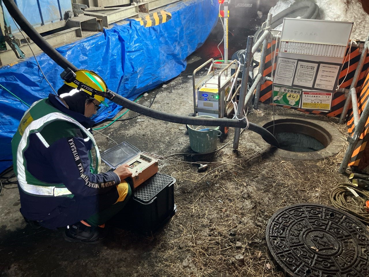 当工事は国道38号線と市道北親通において夜間に交通規制をかけて、既設マンホール内に入って行う工事となっています。地域の皆様にご迷惑をお掛けしないようコミュニケーションを大切にし、安全対策及び酸素欠乏症予防対策、騒音・振動にも十分配慮し、無事故無災害での工事完成を目指します。- 製管状況(自立管牽引式)①(10月度)