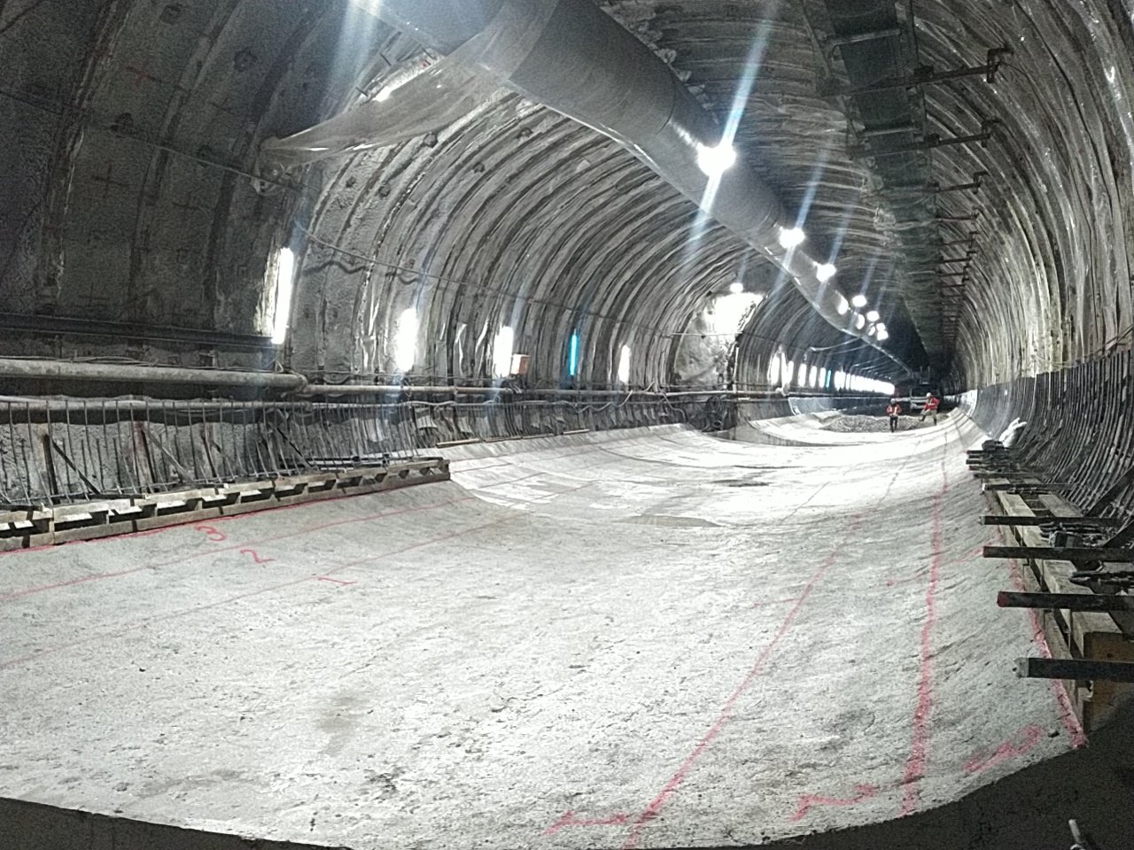 本工事は発破掘削方式で掘削を行い、切羽の掘削ズリ搬出は連続ベルトコンベア方式を採用し、人と運搬車両の接触を防止します。